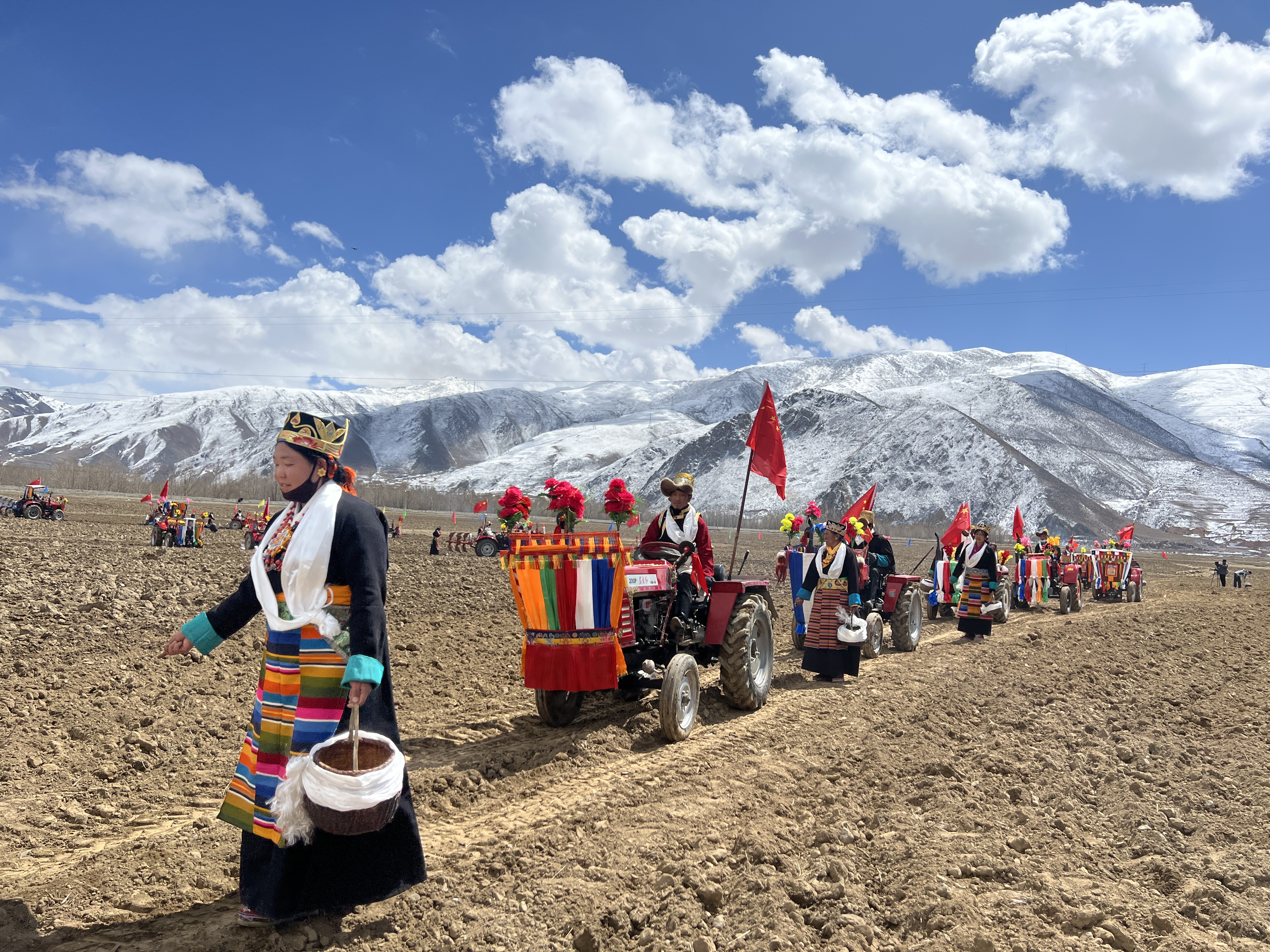 驚蟄過后,祖國各地,大江南北,陸續(xù)進入春耕階段,人們帶著新一年的盼望在田壟上開始新一年的耕耘。春耕,在西藏農民的眼中,是一年之中最隆重的農事活動之一。換上嶄新的藏裝,帶上釀好的青稞酒,手捧自家的“切瑪”(象征五谷豐登),全村人聚在田間舉行春耕前盛大隆重的開耕儀式。唱起“諧青”祈愿歌,伴隨轟隆隆的農機聲音,抒發(fā)著春耕帶來的無限喜悅和希望。