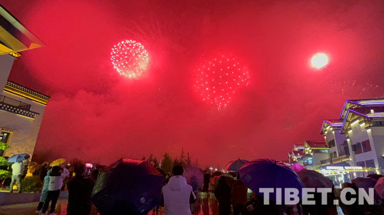 圖為2023西藏林芝桃花旅游文化節(jié)開(kāi)幕式當(dāng)晚的煙火表演 攝影:王茜