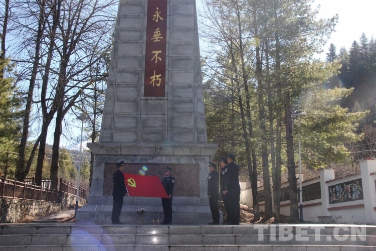 圖為西藏邊檢總站執(zhí)法調(diào)查支隊(duì)執(zhí)法調(diào)查七隊(duì)民警向亞?wèn)|縣革命烈士英名墻默哀 攝影:李渠成
