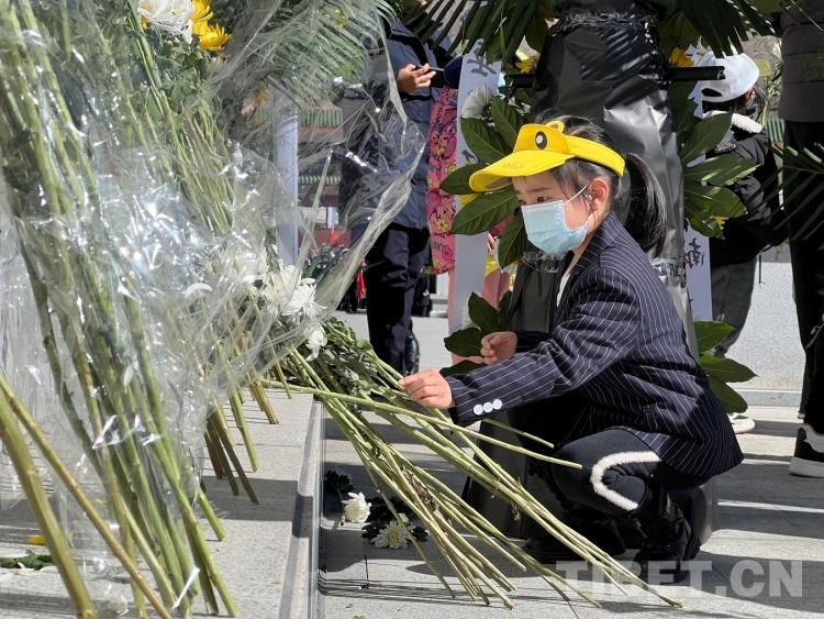 圖為社會各界人士向革命先烈敬獻鮮花 攝影:德吉卓瑪