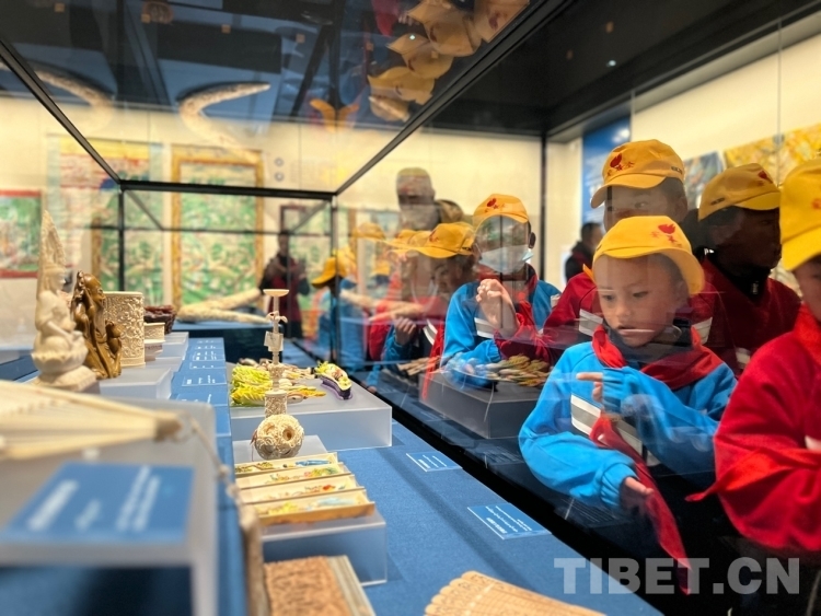 西藏博物館設(shè)有基本陳列“雪域長歌——西藏歷史與文化”“離太陽最近的人——西藏民俗文化”、專題陳列“雪域豐碑——西藏革命文物”、西藏百萬農(nóng)奴解放紀(jì)念館。30名學(xué)生跟隨帶隊老師的腳步走向“雪域長歌——西藏歷史與文化”陳列館,此館分為“史前時期”“唐宋時期”“元明時期”“清代民國時期”“黨的光輝照邊疆 邊疆人民心向黨”五個部分。學(xué)生們在講解員的帶領(lǐng)下按序參觀,感受西藏的悠久歷史和燦爛文化,了解歷朝歷代中央政府對西藏的有效治理,傾聽西藏人民與全國各族人民的交往交流交融……學(xué)生們聽著久遠(yuǎn)的故事,看著一件又一件極具歷史縱深感的展品,滿眼都是求知欲和好奇心。“我們以前組織的愛心公益活動都是到西藏偏遠(yuǎn)地區(qū)、條件比較落后的學(xué)校捐贈學(xué)習(xí)用品、生活物資,但發(fā)現(xiàn)這樣只是解決了他們物質(zhì)上一些困難。外面的世界是什么樣的,其實對于大多數(shù)孩子來說是一無所知?!笨粗⒆觽儗μ鄸|西充滿好奇,江蘇商會黨委聯(lián)合黨支部組織委員感慨地說道:“這次我們幾個承辦單位克服種種困難,做了一次嘗試。看到孩子們沉浸其中,這個活動也就有了意義。”