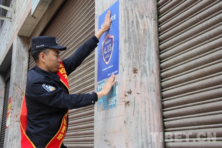 圖為聶拉木邊檢站民警在口岸轄區(qū)內張貼“全民國家安全教育日”宣傳海報 攝影:軒紅偉