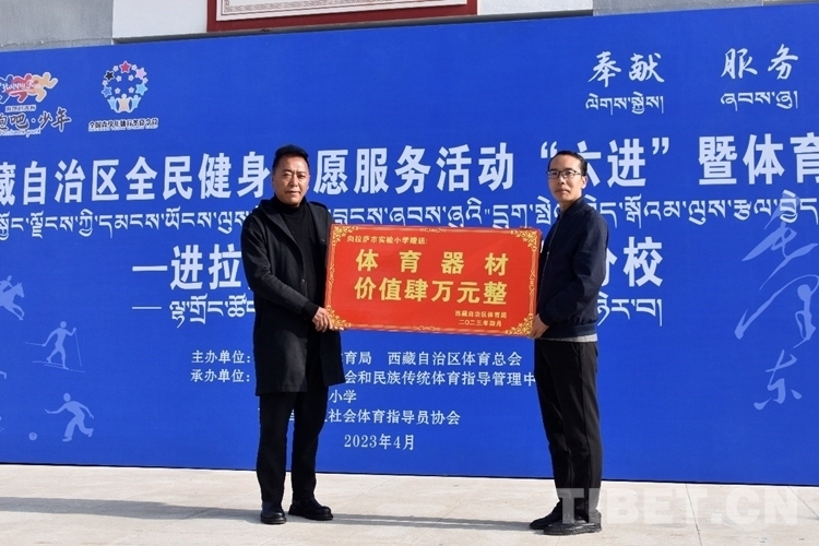 活動開幕式現(xiàn)場,西藏自治區(qū)體育局社體中心向拉薩市實驗小學(xué)東城分校,配發(fā)了價值四萬元整的校園體育器材,保障學(xué)生日常體育運動需要。
