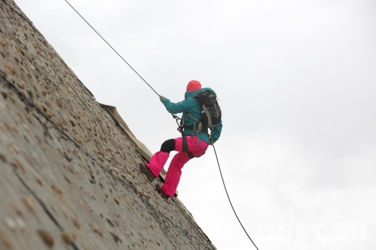 圖為登山隊專業(yè)教練對山友們進行登山技術(shù)培訓 攝影:德吉卓瑪