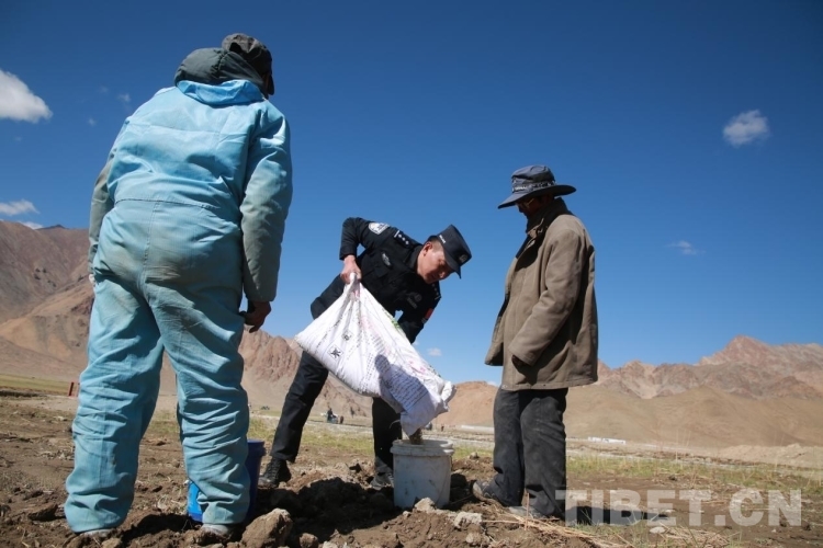 日前,西藏阿里邊境管理支隊日土邊境派出所民警走進(jìn)日土縣日土村,“增援”該所長期駐守在此的日土村警務(wù)室民警,與村民共同播種青稞。