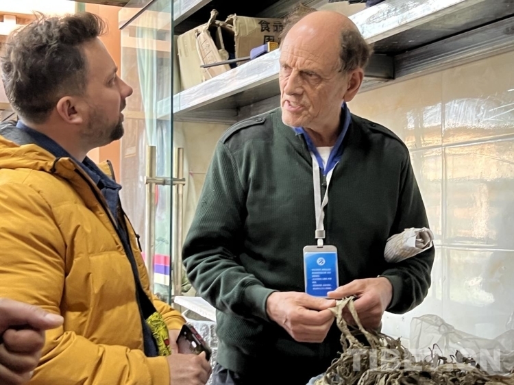 圖為5月16日參訪團(tuán)成員在農(nóng)民專業(yè)合作社了解藏紙?jiān)牧稀袄嵌静荨?nbsp;攝影:德吉卓瑪