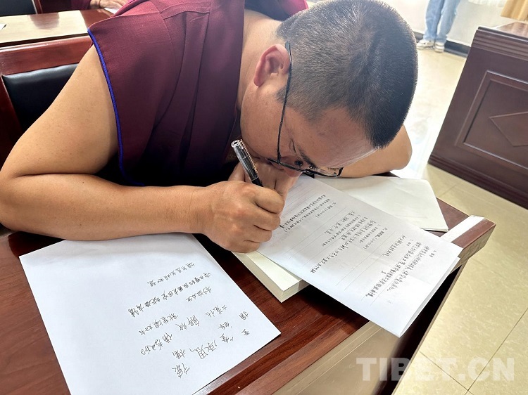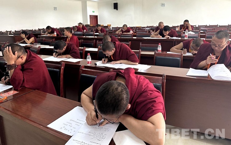 圖為中國藏語系高級佛學(xué)院2023年“拓然巴”高級學(xué)銜班招生考試(西藏)考點(diǎn)的筆試現(xiàn)場