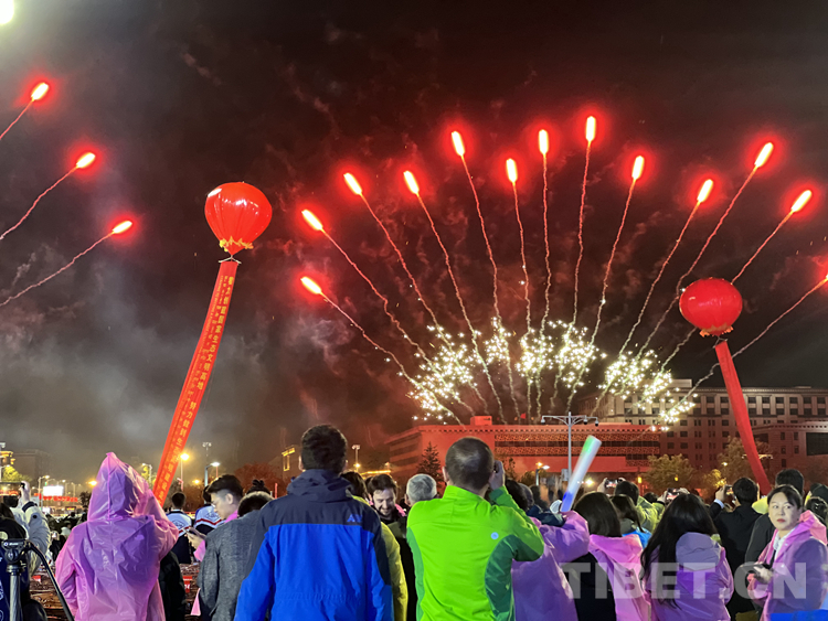 圖為煙花秀閃亮藏博會(huì)開(kāi)幕式上空 攝影:德吉卓瑪