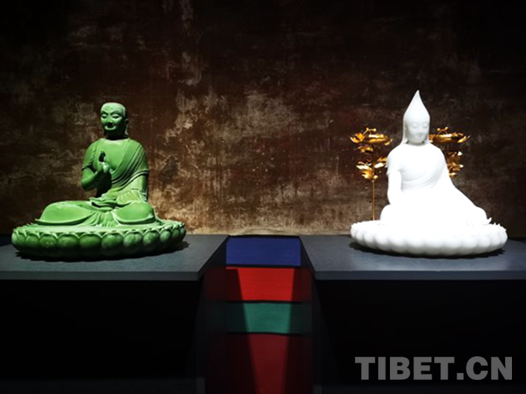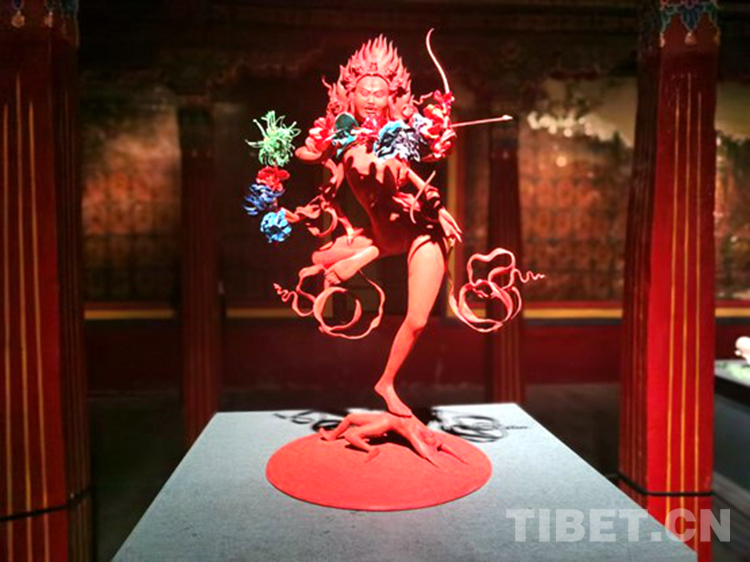 圖為展覽中圍繞西藏歷史與傳統(tǒng)創(chuàng)作的雕塑作品 攝影:王淑