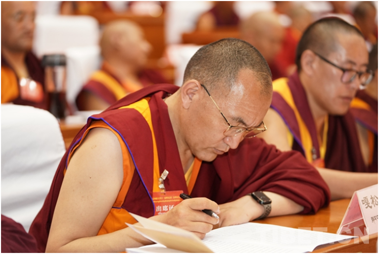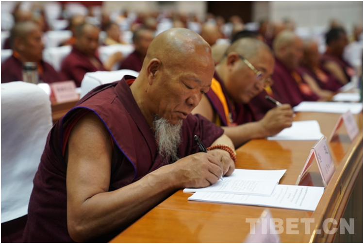 在安排部署下一步重點工作時,班禪表示,推動自我變革,開展教義教規(guī)闡釋。發(fā)揮藏傳佛教界人士在推進(jìn)中國化中的主體作用,推動沿著中國化方向健康傳承,引導(dǎo)藏傳佛教界人士切實增強自我變革的思想和行動自覺,以社會主義核心價值觀為引領(lǐng),在保持基本信仰、核心教義的前提下,促進(jìn)教義教規(guī)、管理制度、禮儀習(xí)俗、行為規(guī)范等方面逐步形成中國特色。實施藏傳佛教教義教規(guī)闡釋工程。引導(dǎo)藏傳佛教界對教義教規(guī)、藏傳佛教經(jīng)典選優(yōu)擇重、去粗取精、推陳出新,作出與中國國情、中華文化、中國特色社會主義相適應(yīng)的通俗易懂、與時俱進(jìn)地闡釋。引導(dǎo)藏傳佛教界人士在闡釋經(jīng)典、講經(jīng)說法、日常生活中學(xué)習(xí)使用國家通用語言文字,開展經(jīng)典翻譯、選編、注釋,挖掘教義思想中積極因素。爭做精進(jìn)修學(xué)、推進(jìn)藏傳佛教健康傳承的好僧尼,爭做守法遵規(guī)、弘揚濟(jì)世利民優(yōu)良傳統(tǒng)的好僧尼,爭做立場堅定、堅決維護(hù)祖國統(tǒng)一和民族團(tuán)結(jié)的好僧尼。