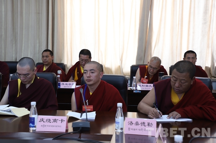 會議審讀《第八屆藏傳佛教講經(jīng)闡釋論文集》,研討如何在保持基本信仰、核心教義的前提下,對藏傳佛教經(jīng)典作出選優(yōu)擇重、去粗取精、推陳出新的闡釋,適應(yīng)和服務(wù)社會發(fā)展需求、人民生活需要。