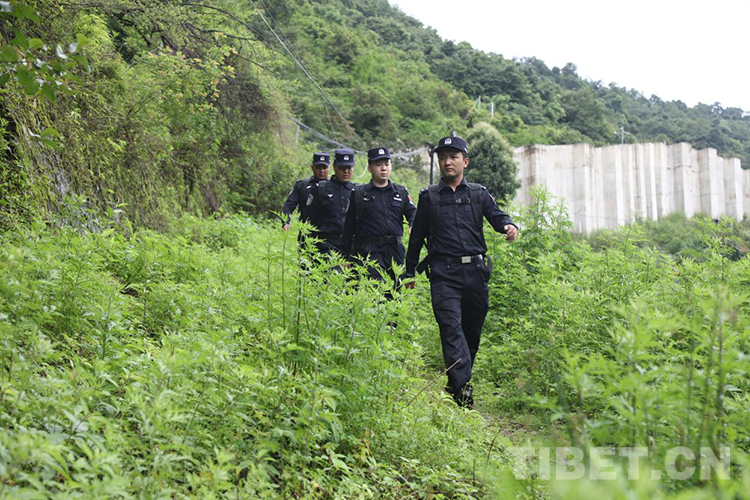 圖為扎西頓珠帶領執(zhí)勤三隊民警在邊境一線踏查 攝影:鄒興國