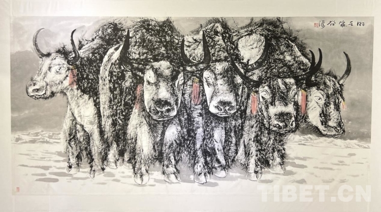 汪仕民介紹,此次《牦牛志·水墨西藏》個(gè)人作品展上,除了水墨作品外,還特地安排了一部分去年疫情封控期間的牦牛畫作和系列風(fēng)景作品配合這次的展出,希望特殊時(shí)期的作品與這次牦牛水墨系列作品能給拉薩市民帶來一份愜意,和饕鬄般美的享受盛宴?!拔乙蚕Mㄟ^這次兩百余幅畫作的展出,陶冶豐富拉薩的情操與文化生活,也為西藏文化藝術(shù)發(fā)展盡一份綿力。”汪仕民說。