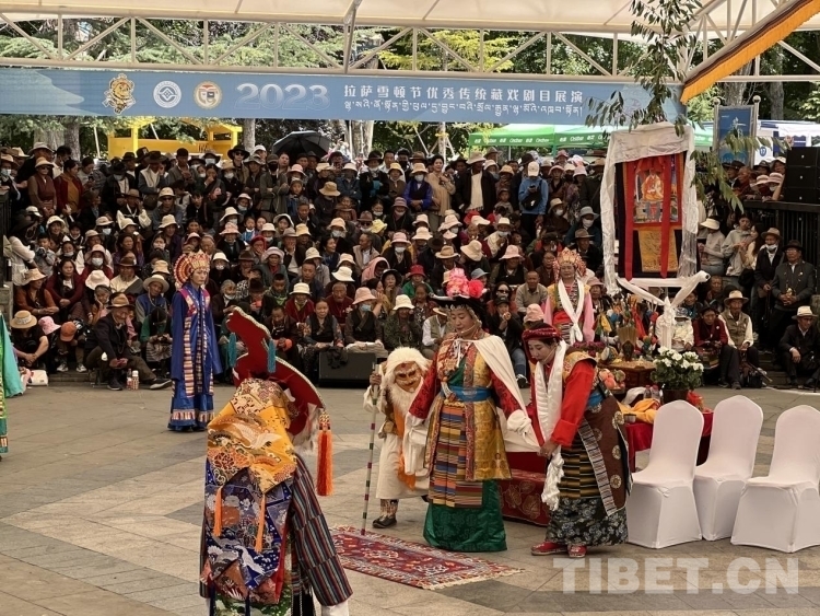 8月16日上午11點(diǎn),西藏拉薩市林周縣甘曲藏戲隊(duì)在布宮腳下的宗角祿康公園演出了今年雪頓節(jié)的第一場(chǎng)藏戲演出節(jié)目——《卓娃桑姆》,市民游客紛紛到宗角祿康欣賞與享受雪頓節(jié)的藏戲文化“盛宴”。