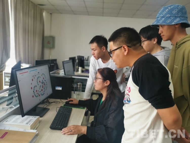 圖為擁措教授正在指導藏文古籍智能處理方向的研究生 受訪者供圖