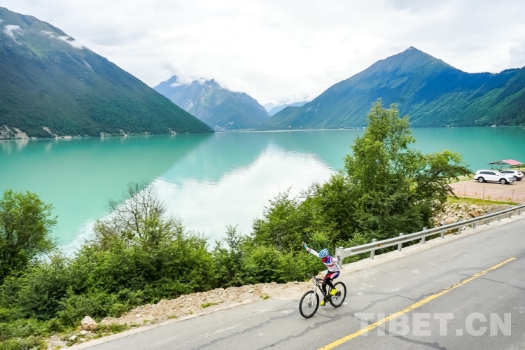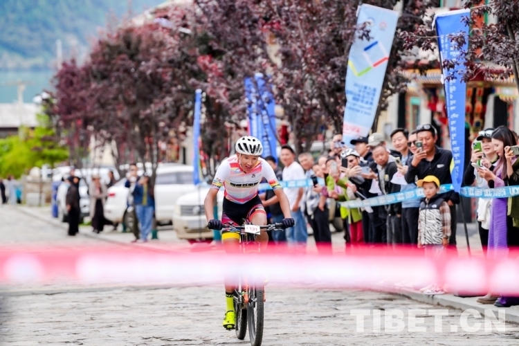 圖為第九屆環(huán)巴松錯(cuò)國(guó)際山地自行車越野競(jìng)速賽比賽現(xiàn)場(chǎng) 攝影:德吉卓瑪