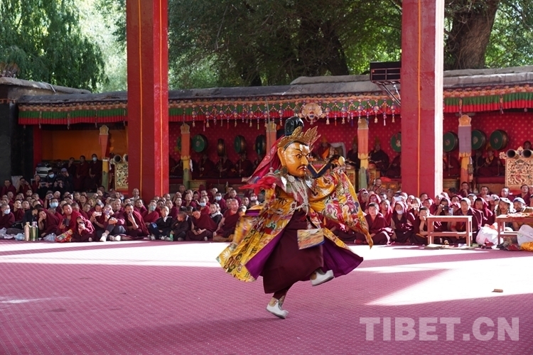 中國西藏網(wǎng)訊 9月19日,扎什倫布寺舉行的為期三天的“羌姆”表演落下帷幕?!扒寄贰笔怯缮畟H表演的一種宗教舞蹈,也稱跳神。