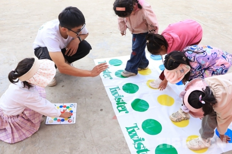 初入高原,在炙熱的陽(yáng)光下,人文科考隊(duì)見到了等待許久熱情的孩子們。你比劃我猜、快樂(lè)三園、師生互選……在破冰游戲氛圍的烘托下,彼此間消除了陌生感,拉近了距離,也讓人文科考隊(duì)對(duì)未來(lái)的這一段時(shí)光充滿期待。