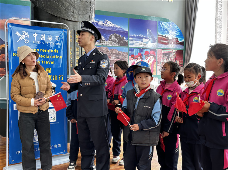 圖為參加活動(dòng)的民警與學(xué)生在中尼(中國與尼泊爾)9號(hào)界樁,開展“傳承紅色基因 弘揚(yáng)烈士精神”主題宣傳教育活動(dòng)