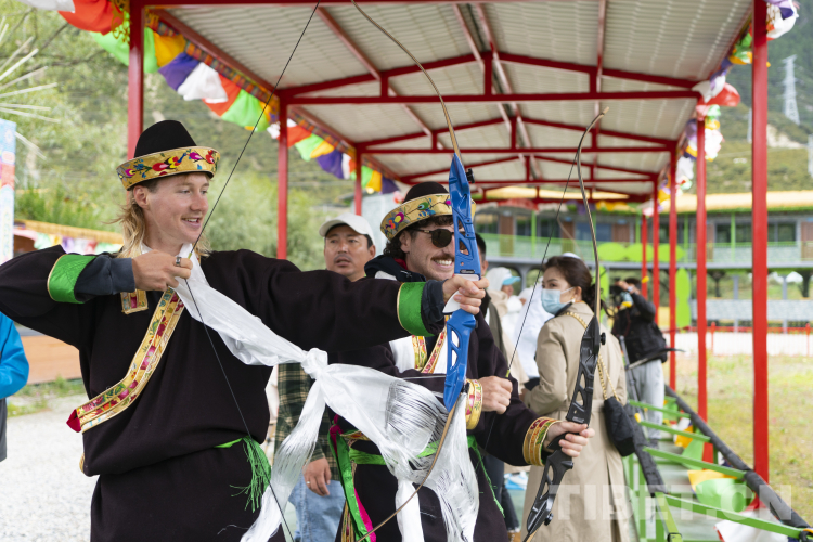 身著工布藏裝的澳大利亞籍五指山1867洲際自行車隊隊員Oliver Anderson正在和身邊的隊友進行響箭比賽。在身邊藏族村民的幫助下,Oliver Anderson的箭術(shù)越來越準(zhǔn),每射出一支響箭,兩位外籍運動員都因這種體育項目的獨特魅力而歡呼、擊掌。提起林芝這座城市,Oliver Anderson說:“林芝是一座非常美麗的城市,這里的天氣非常舒適,也使自己比賽狀態(tài)非常好。西藏是一處越來越開放的地方,這次能來西藏參加比賽非常榮幸。”