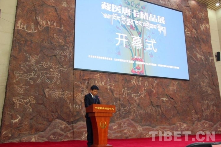 中國藏學(xué)研究中心北京藏醫(yī)院院長仲格嘉在開幕式致辭中介紹,起源和根植于中華民族的藏醫(yī)藥,是我國中醫(yī)藥學(xué)寶庫中的一顆璀璨明珠。藏醫(yī)藥迄今已有3800多年的發(fā)展歷史,在藏醫(yī)學(xué)史上形成了別出心裁的藏醫(yī)唐卡。藏醫(yī)唐卡以浩瀚畫卷,形象生動、系統(tǒng)地描繪了藏醫(yī)藥學(xué)的體系框架、基礎(chǔ)理論、臨床實踐技法,以及藏醫(yī)史、醫(yī)德醫(yī)風(fēng)、養(yǎng)生保健等內(nèi)容。除了藏醫(yī)教學(xué)的實用價值外,藏醫(yī)唐卡還有很高的民族學(xué)、歷史學(xué)、宗教學(xué)及美學(xué)價值,其卷幅之多、內(nèi)容之廣博、構(gòu)思之巧妙、畫工之精湛,堪稱學(xué)習(xí)藏醫(yī)藥學(xué)的百科全書。