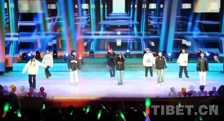 圖為拉薩師范高等??茖W(xué)校學(xué)生代表表演開(kāi)場(chǎng)舞蹈《街舞freestyle》 攝影:王佳豪