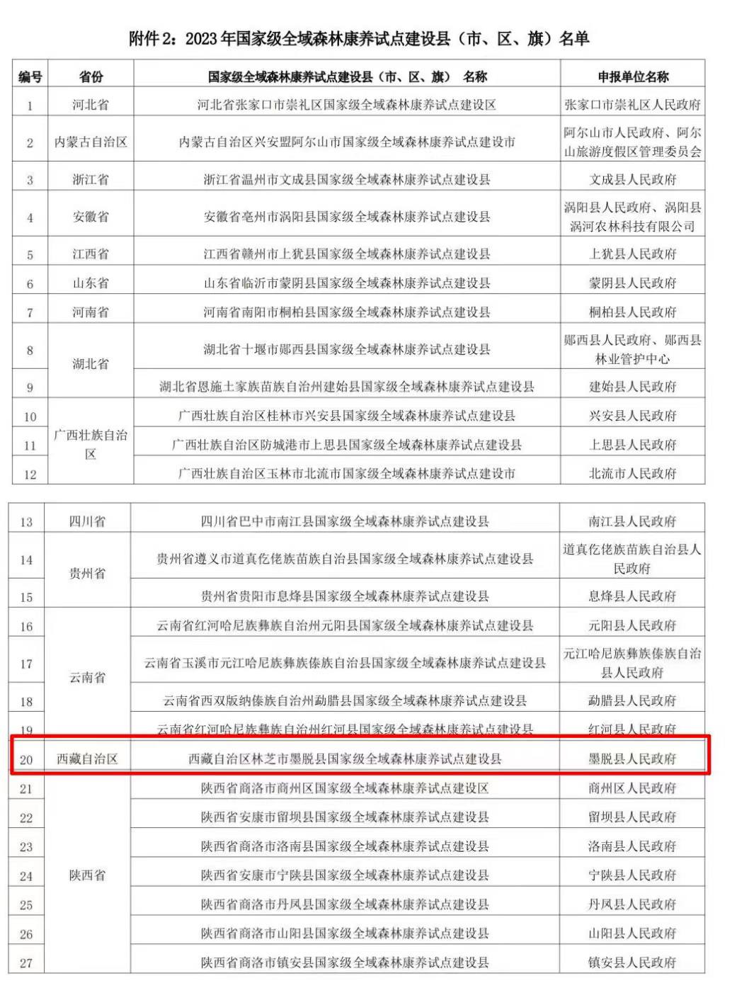 中國西藏網(wǎng)訊 11月22日,中國林業(yè)產(chǎn)業(yè)聯(lián)合會公示了2023年國家級森林康養(yǎng)試點建設(shè)單位名單,西藏自治區(qū)林芝市墨脫縣入選2023年國家級全域森林康養(yǎng)試點建設(shè)縣,系西藏自治區(qū)唯一入選的縣。
