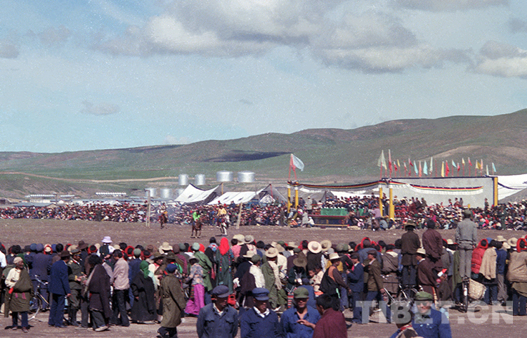 在藏北首府那曲鎮(zhèn)草壩上所舉行的傳統(tǒng)賽馬盛會(唐召明1987年攝)