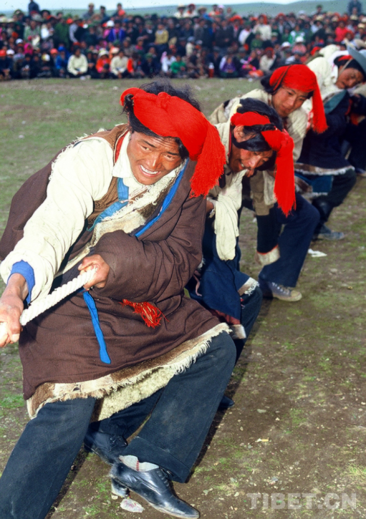 在那曲賽馬盛會上舉行的拔河比賽(唐召明1987年攝)
