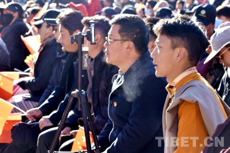 圖為開幕式現(xiàn)場市民在直播 攝影:次旦拉姆