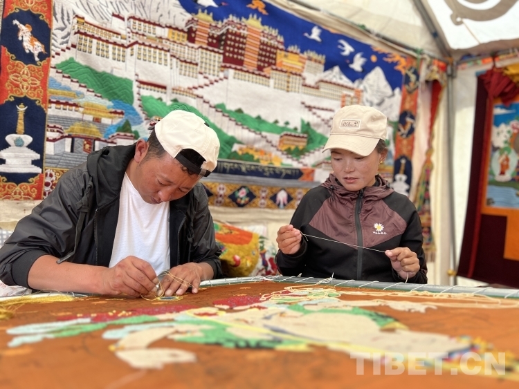 一針一線一幅畫,一時一日一春秋。在潔白的帳篷里,不時有游客進(jìn)出,欣賞著夫妻二人所制作的白度母珍珠唐卡、布達(dá)拉宮堆繡唐卡、“四講四愛”刺繡唐卡等精美作品。土旦旦增與次旦卓瑪手下不僅僅是飛針走線,更是“繡出”他們的美好生活。(中國西藏網(wǎng) 記者/德吉卓瑪)
