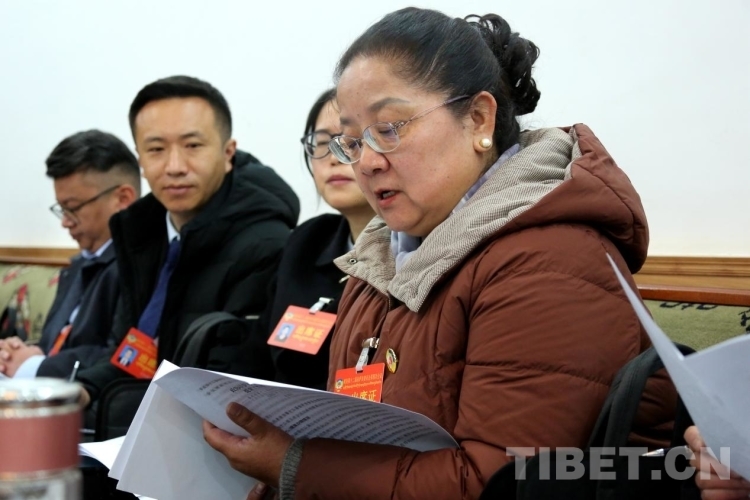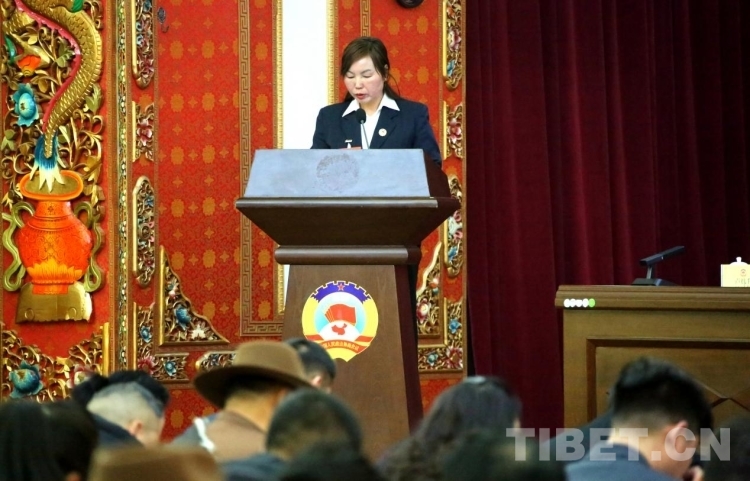 圖為趙彩娥在拉薩政協(xié)十二屆四次會(huì)議第二次全體會(huì)議上發(fā)言 攝影:王佳豪