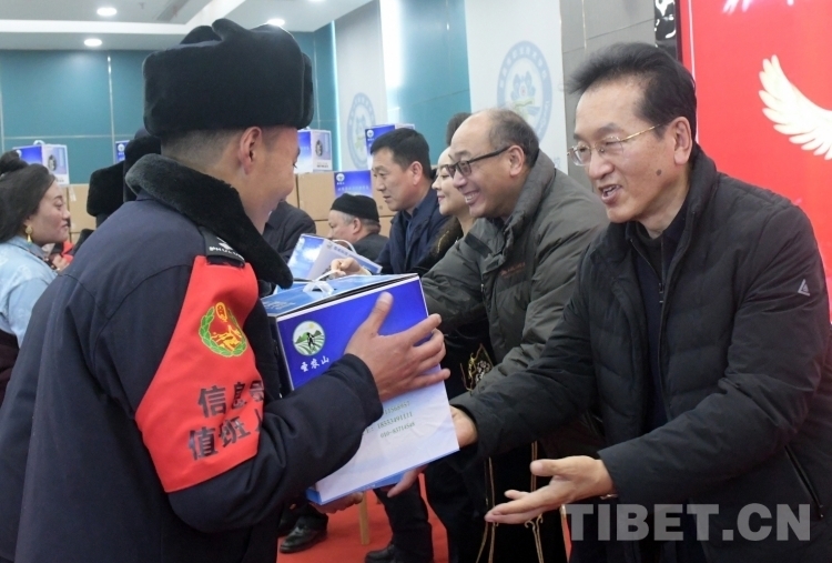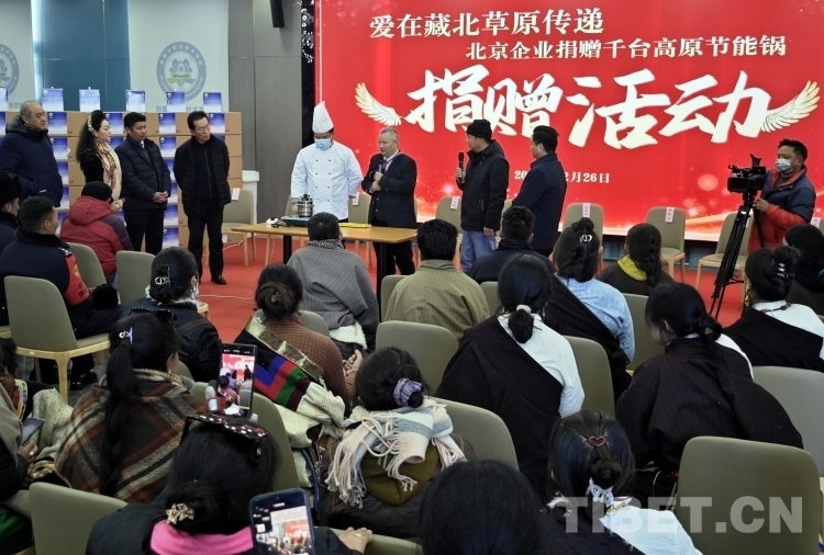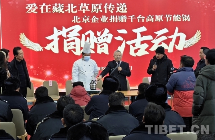 隆冬時節(jié),藏北大地千里雪飄,寒氣襲人,但在那曲市職業(yè)學(xué)校實訓(xùn)樓里卻熱鬧非凡。室內(nèi),大型電子屏顯示著“愛在藏北草原傳遞——北京企業(yè)捐贈千臺高原節(jié)能鍋捐贈活動”的字幕。那曲市近百名農(nóng)牧民群眾和環(huán)衛(wèi)工人、鐵路護(hù)路隊員代表相聚這里接受捐贈。