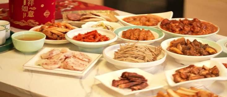 圖為豐盛的年夜飯來源:新華網(wǎng)