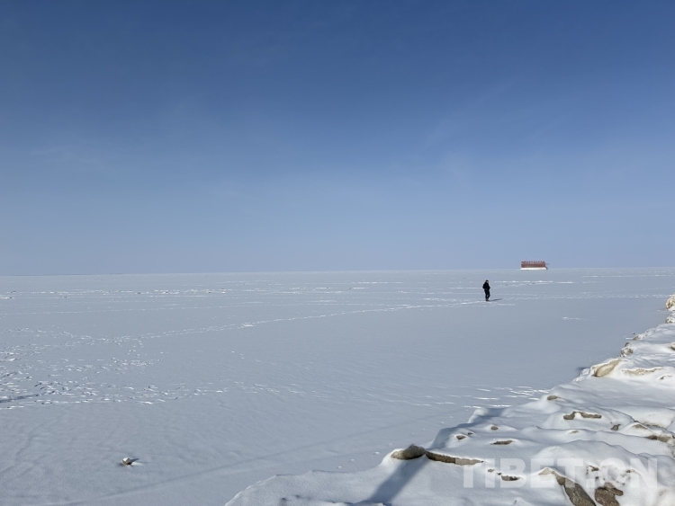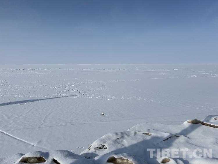 青海湖是我國面積最大的內(nèi)陸湖泊,湖岸線長約360公里。落雪后的湖面更是白茫茫一片,極目遠眺,水與天相接。天地間十分安靜,只余不太溫柔的風聲在耳側(cè)呼嘯而過。偶爾有游人在冰面走動,在白色的背景下顯得格外醒目。我們的無人機好像一只勇敢的沙鷗,翱翔在水天之間。(中國西藏網(wǎng) 文/李一凡 龍真多吉 張萌萌)