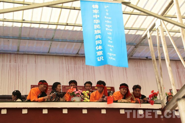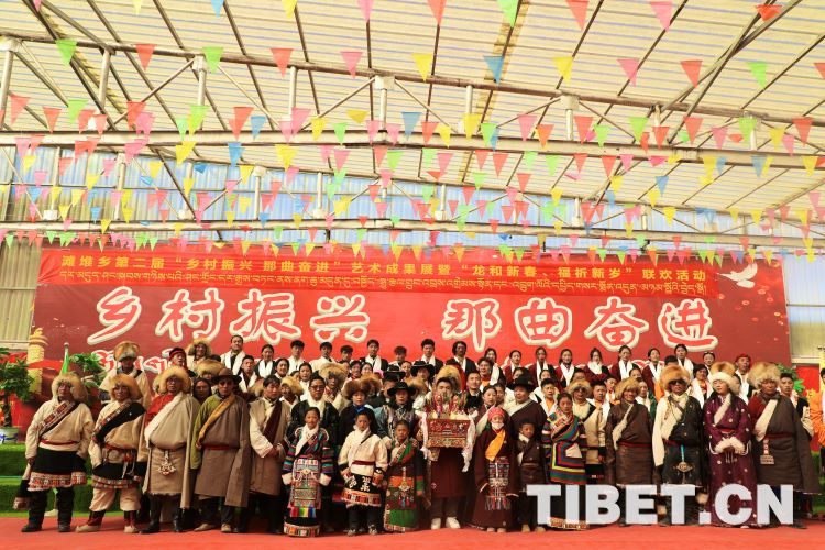 中國西藏網(wǎng)訊 2月10日,中國西藏信息中心“新春走基層”青藏線采訪組一行,來到西藏自治區(qū)那曲市安多縣灘堆鄉(xiāng),適逢當?shù)卦谂e辦灘堆鄉(xiāng)第二屆“鄉(xiāng)村振興 那曲奮進”藝術(shù)成果展暨“龍和新春、福祈新歲”聯(lián)歡活動。采訪組一行來到鄉(xiāng)政府對面的灘堆鄉(xiāng)文化站,記者在現(xiàn)場看到許多穿著具有當?shù)孛褡逄厣椀娜嗽诖司奂?。在好奇心的?qū)使下,經(jīng)詢問當?shù)馗刹坎胖?,為喜?024春節(jié)和藏歷新年,感激黨和國家的關(guān)心關(guān)懷,歌頌如今來之不易的幸福生活,鄉(xiāng)村文藝隊特此精心準備了文藝節(jié)目,以嶄新的面貌和昂揚的精神展現(xiàn)新時代牧民群眾的精神風貌和幸福生活。