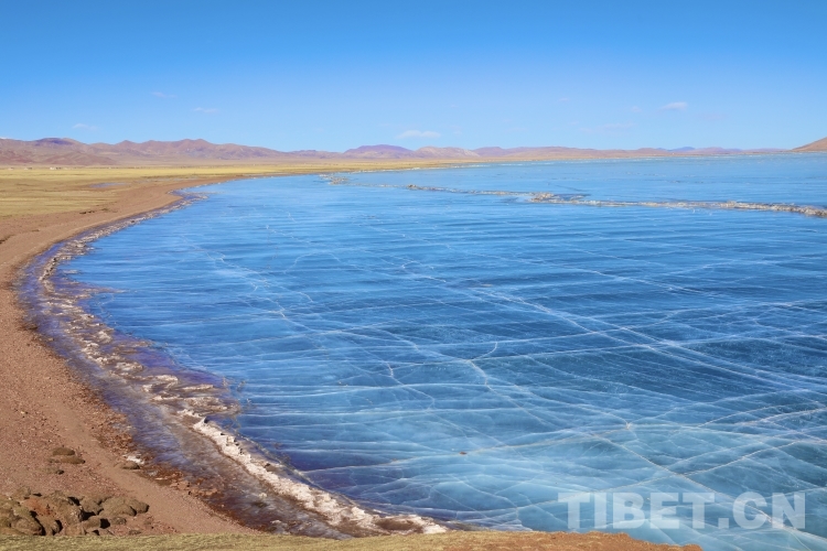 錯(cuò)那湖湖面海拔4600米左右,面積400多平方公里,是世界上海拔最高的淡水湖,更有冰泡、冰裂、冰推等奇妙的自然景觀。當(dāng)氣溫急劇下降時(shí),水溫也驟降,湖底產(chǎn)生的氣體在上升過(guò)程中被凍在冰中,形成許多細(xì)小的白色氣泡,懸浮在厚厚的冰層之中。湖水表面一層被藏北的朔風(fēng)快速凍結(jié)成冰,部分碎冰在岸邊堆積,形成隆起的“冰岸線”。又由于初春晝夜溫差較大,湖冰崩裂,形成網(wǎng)狀的冰裂紋路。這些透明裂紋從岸邊開(kāi)始,像潮水一樣漫過(guò)平地,漫過(guò)羌塘草原腹地,漫到天邊,把羌塘大地裝扮成一個(gè)冰晶縱橫交錯(cuò)的世界。(中國(guó)西藏網(wǎng) 文/李一凡 張萌萌 龍真多吉)