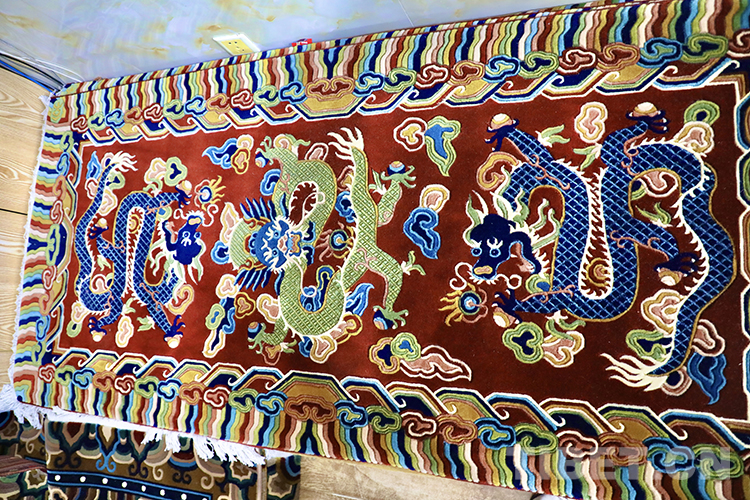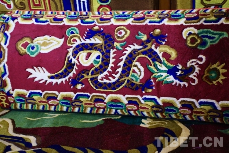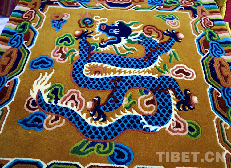 一條條精美的藏毯既體現(xiàn)了藏民族的審美情趣,也表達(dá)了中華兒女對龍的熱愛。(中國西藏網(wǎng) 記者/龍真多吉 張萌萌 李一凡)
