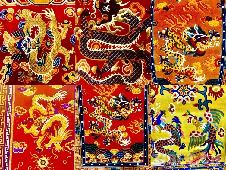 龍作為美好、向上、富貴、勇猛的象征,可以說龍文化滲透在我們生活中的各個角落。藏毯上的這些龍圖案也不例外,它不光是追求審美上的好看,更是有一種敬畏和美好的寓意。