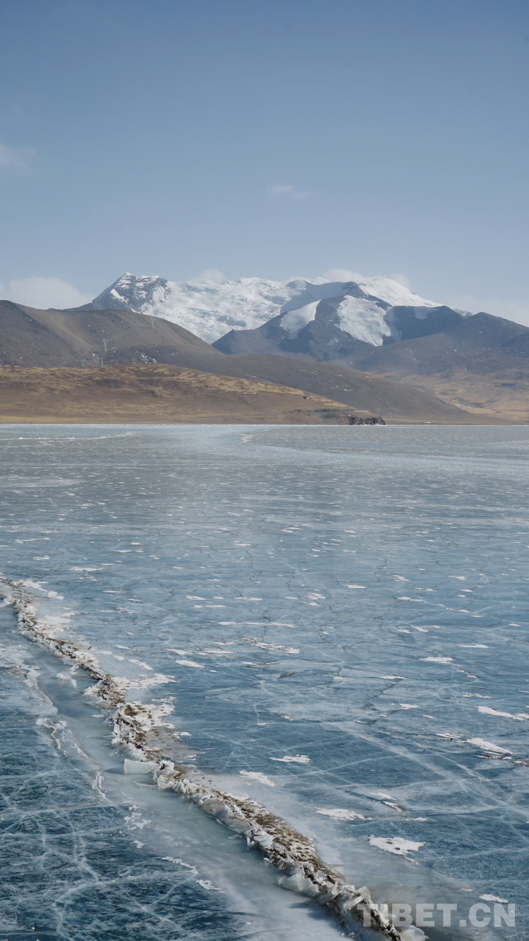 又見羊卓雍措是在冬日。與夏天不同,冬天的西藏常見大風(fēng)。云一少,羊湖的藍(lán)愈加冷冽深邃。在去普瑪江塘鄉(xiāng)采訪的途中,還路過了普莫雍錯(cuò)。與全年幾乎不結(jié)冰的羊湖不同,普莫雍錯(cuò)已經(jīng)結(jié)為通透的藍(lán)冰。湖的邊緣像是在打浪的一瞬間凍結(jié)起來的,一層一層,走在上面稍不留神就會被湖面的大風(fēng)吹倒。