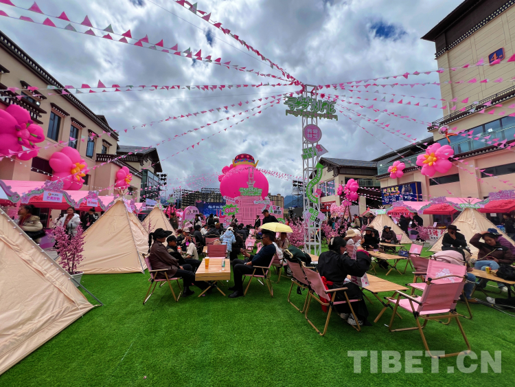 圖為游客在主會(huì)場(chǎng)工布天街公園“桃花嘉年華”現(xiàn)場(chǎng)體驗(yàn)營(yíng)地。攝影:德吉卓瑪