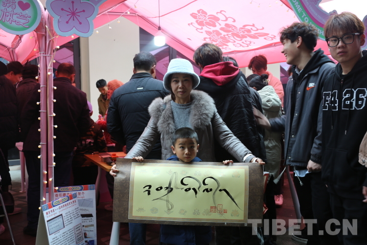 圖為游客收到林芝市職業(yè)技術(shù)學(xué)校學(xué)生的書法作品。攝影:旦曲