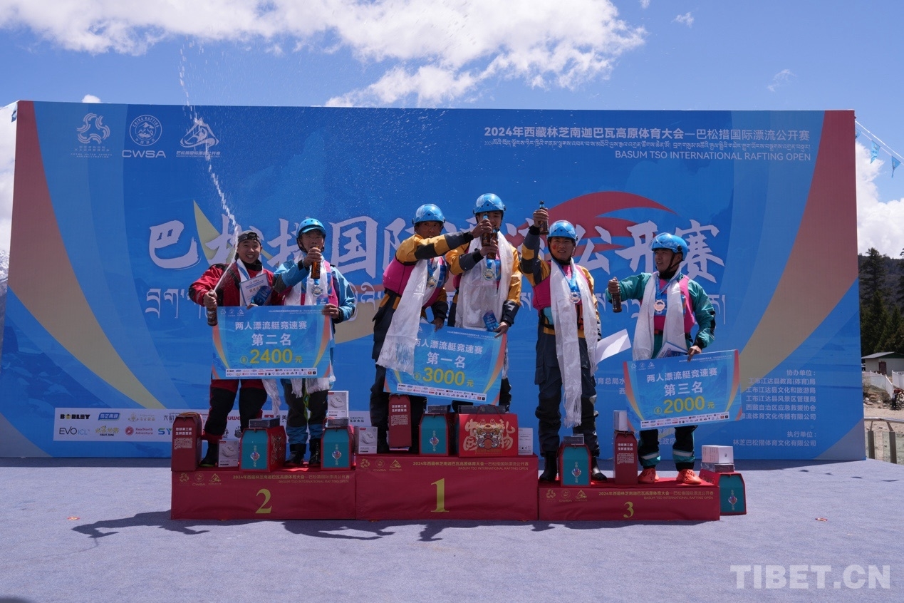 圖為兩人漂流艇競(jìng)速賽頒獎(jiǎng)儀式 攝影:旦曲