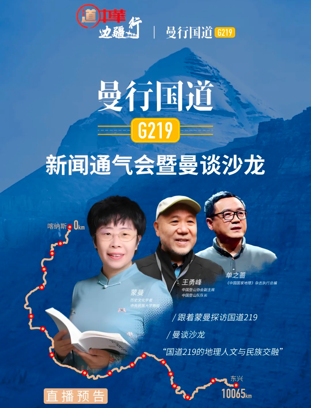 蒙曼教授對此行十分期待,她在發(fā)言中介紹了為什么要行走219以及怎樣行走219。她表示,無論是作為一位人文學者,還是一名民族工作者,亦或是一個浪漫主義者,她都想去走一走219:“黨的十八大以來,脫貧攻堅工作讓邊疆民族地區(qū)實現(xiàn)了跨越性發(fā)展。我希望接過先輩的旗幟,沿著新貫通的公路,做一次新時代的邊疆民族社會歷史調(diào)查,把邊疆民族的全新面貌記錄下來,傳播出去,為鑄牢中華民族共同體意識盡心盡力?!蓖瑫r,蒙曼教授號召大家一起行走:“我會在路上,以會客廳的形式,和各位大咖、各地的文博學者、媒體工作者暢談,我也會在路上和大家分享每天的旅程和感悟,衷心期待著您的互動和加入?!?/p>
