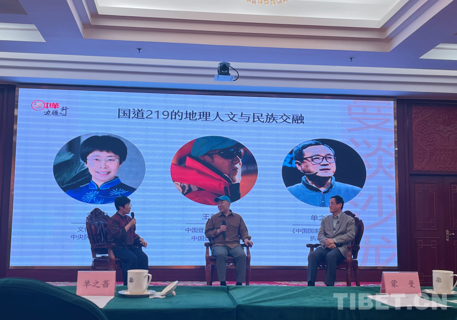 圍繞即將正式啟程的“曼行國道·219”活動,現(xiàn)場還舉行了“曼談沙龍”,蒙曼教授與特邀嘉賓——中國登山協(xié)會副主席、中國登山隊隊長王勇峰,《中國國家地理》雜志社執(zhí)行總編單之薔,圍繞“曼行國道·219”沿途的自然地理、人文歷史、民族風俗等話題展開了對話。蒙曼教授分享了她對于219國道沿途歷史文化、各民族生活情態(tài)和非遺傳承等內(nèi)容的了解和期待;單之薔結合親身經(jīng)歷,分享了他對于219國道壯美景色和地理景觀的印象和出行經(jīng)驗;王勇峰則從戶外安全角度,對219國道沿線需要注意的事項進行了安全講解和現(xiàn)場指導。