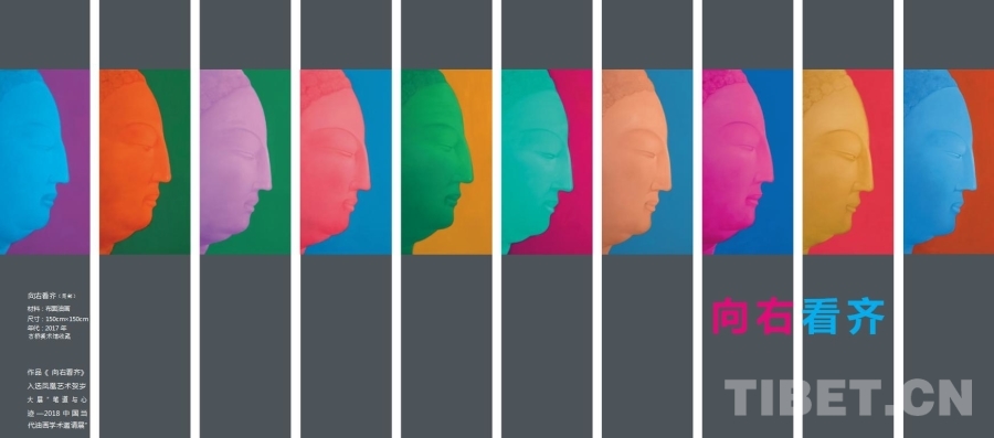 在創(chuàng)作過程中,陶宏嘗試將傳統(tǒng)佛像藝術(shù)與現(xiàn)代油畫技法相結(jié)合,融入現(xiàn)代審美元素和時代精神。“我希望用西方的觀念來表達東方精神,這就是互鑒與融合。”陶宏的油畫作品《漢字雕塑》《覺者》、《向右看齊》等受到沃霍爾、克洛斯的影響,中外文化在時空的交融與碰撞中,即刻產(chǎn)生出新的觀念。借助現(xiàn)代藝術(shù)手法和觀念,陶宏嘗試對佛像藝術(shù)進行解構(gòu)與重塑。通過打破傳統(tǒng)的創(chuàng)作界限,將佛像與周圍環(huán)境、人物以及情感進行融合,創(chuàng)造出一種新的藝術(shù)表達方式,更加自由、開放。