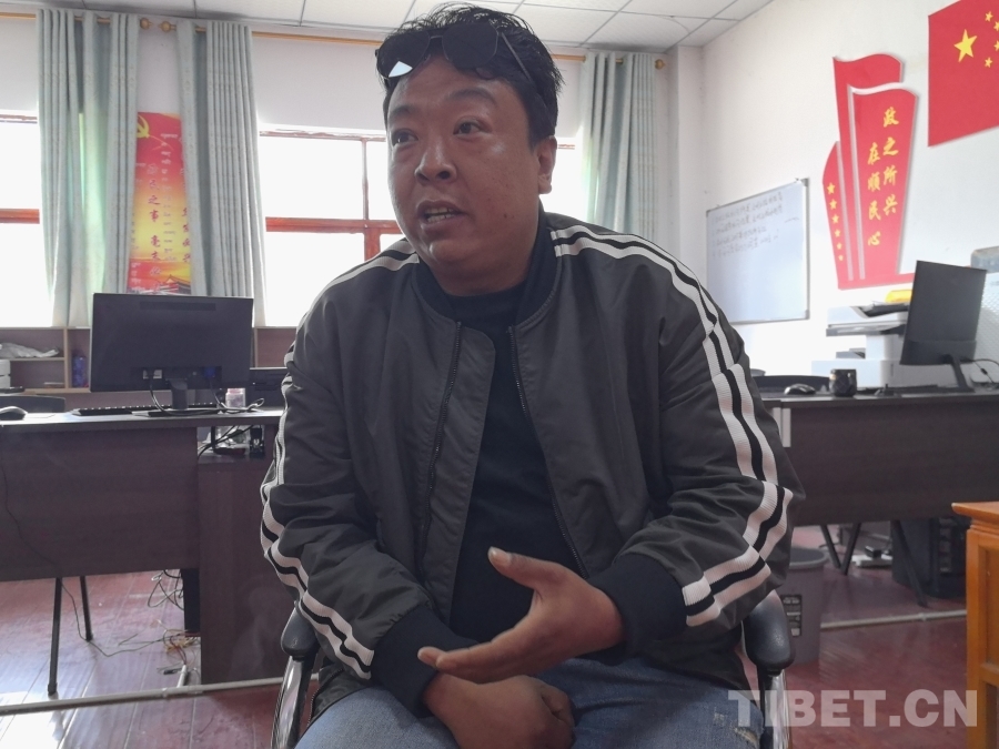 圖為正在接受采訪的吉塘社區(qū)駐村工作隊選派第一書記兼副隊長向巴扎西 攝影:王淑
