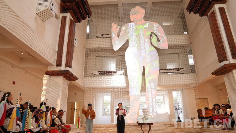 活動現(xiàn)場,拉薩市特殊教育學校師生向西藏社會主義學院羅旦博士、中國藏學出版社代表、北京大方弘文圖書發(fā)行有限公司代表、西藏介觀文化藝術(shù)教育基金會代表敬獻了哈達,贈送了錦旗、畫作,對他們在新書出版中給予的支持和幫助表達了誠摯的謝意。隨后,拉薩市特殊教育學校學生為現(xiàn)場來賓表演了二重唱《愛在陽光下》、詩歌朗誦《光明》、舞蹈《舞動大地》等精彩的節(jié)目,將活動推向高潮,現(xiàn)場觀眾紛紛鼓掌叫好,氣氛十分感人。