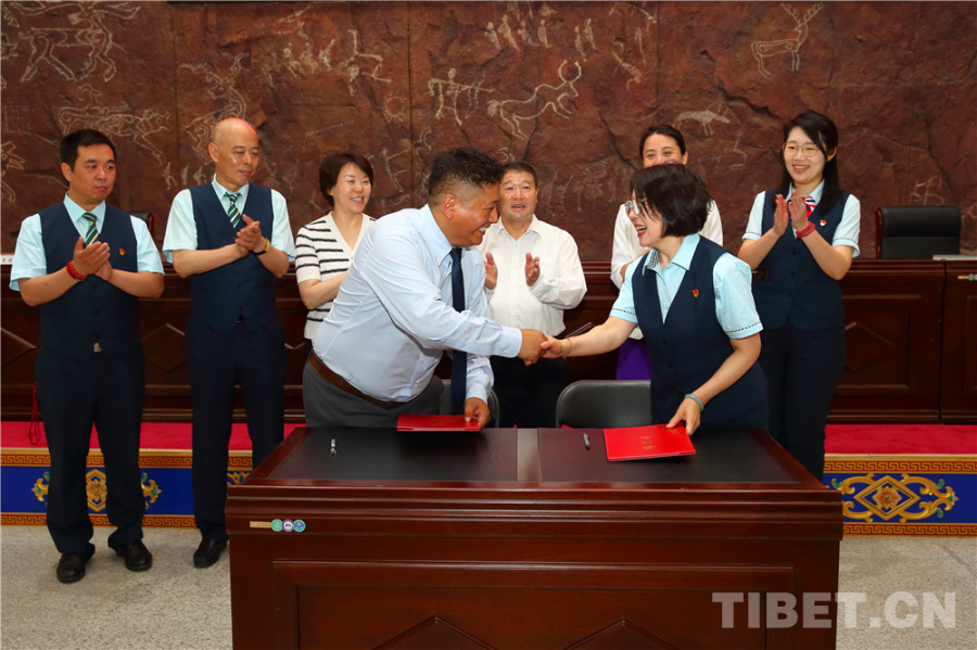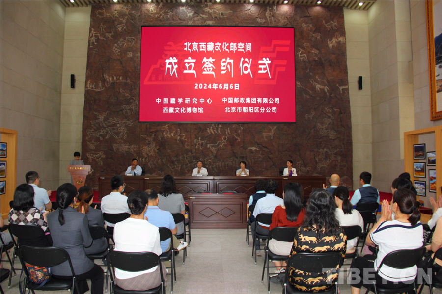 中國西藏網(wǎng)訊 6月6日,中國藏學(xué)研究中心西藏文化博物館與中國郵政集團有限公司北京市朝陽區(qū)分公司聯(lián)合建立“北京西藏文化郵空間”合作簽約儀式在西藏文化博物館(下文簡稱“博物館”)舉行。中國藏學(xué)研究中心(下文簡稱“藏研中心”)副總干事李德成、中國郵政集團有限公司北京市朝陽區(qū)分公司總經(jīng)理梁洪濤、藏研中心相關(guān)部門負(fù)責(zé)人出席活動。