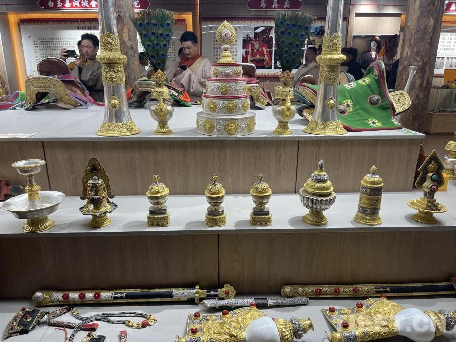 在傳習所的展廳內,各式各樣的金屬鍛造工藝品琳瑯滿目。其中,一把工藝精湛的藏刀吸引了眾人的目光。據(jù)講解員介紹,這把藏刀曾在1980年2月10日《人民日報》第一版刊載的《鋒利的白玉藏刀》上被譽為“民族工藝百花園中的一支奇葩”。白玉縣河坡鎮(zhèn)的金屬鍛造技藝分為七大類,刀具作為最具特色和知名度的產(chǎn)品,深受人們喜愛。